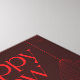 Vibrant, modern, cool graphic design of saying "Happy New Year 2022" with geometric shapes in Christmas / New Year ornaments abstraction. Simple, minimal, vibrant and trendy graphic vector art in red.