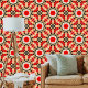 This vibrant wallpaper boasts an intricate geometric pattern that draws inspiration from traditional African textiles. Bold and striking, the colour palette features red, black and cream hues. The central motif showcases an eight-pointed star in rich red, accented with black details. This star radiates from a cream square, creating a mesmerising focal point. Surrounding the star, alternating bands of smaller geometric elements (also in black and cream) form a dynamic tessellation. These angular shapes evoke movement and rhythm.