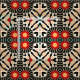 Modern unique fabric design featuring a seamless mosaic pattern made of geometric shapes in black, red, orange and beige.