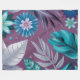 Immerse yourself in a stunning digital artwork featuring a vibrant array of blue and turquoise flowers and leaves set against a rich purple background. This intricate design blends lush foliage and delicate blossoms, creating a mesmerising and colourful botanical fantasy.