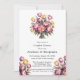 A stunningly illustrated bouquet of flowers featuring radiant pink peonies as the centerpiece. Their delicately detailed petals and stamen draw attention with their vivid beauty. Yellow tulips, some in full bloom and others budding, provide a cheerful contrast. Lush green foliage, with a mix of broad and slender leaves, frames the arrangement, enhancing its natural elegance. Set against a clean white background, the vibrant colours and intricate details are accentuated, creating a harmonious and captivating floral composition.