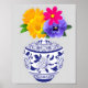 A captivating blend of colours and textures, this floral print showcases a harmonious arrangement of vibrant flowers in a beautiful blue and white vase. The delicate details of each petal and the intricate patterns of the vase create a visually stunning piece that is both modern and timeless. This artwork is perfect for adding a touch of nature and elegance to any space.