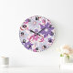 Vibrant Floral Pattern Purple Pink Blue Flowers Large Clock