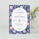 This elegant wedding invitation features a vibrant floral pattern with pink and blue flowers, creating a lush and inviting backdrop. The design includes an oval frame with classic serif typography that adds a formal touch to the layout. Customizable text fields allow for personalization of names, dates, and locations, making it perfect for a memorable celebration. The overall mood is one of warmth and elegance, ideal for couples looking to add a touch of nature-inspired beauty to their special day.