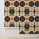 Transform your space with this stunning and intricate folk art wallpaper. Featuring a symmetrical repeating pattern of stylised floral medallions and ornate flourishes, this design is reminiscent of traditional damask, Spanish tiles, and bohemian textiles. A vibrant colour palette of fiery red, bold orange, and cool turquoise pops against the dramatic black details and warm cream background. Perfect for creating an eye-catching accent wall or decorating an entire room, this wallpaper brings an energetic, artistic, and worldly feel to any interior.