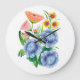 Add a touch of artistic charm to any room with this beautiful large wall clock featuring a vibrant folk art floral design in shades of blue, orange, and yellow. A perfect statement piece for your kitchen, living room, or bedroom.