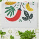 Vibrant Folk Art Tropical Fruit Chilli Pepper Tea Towel