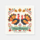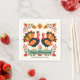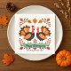 Vibrant Folk Art Turkeys Fall Leaves Thanksgiving Napkin