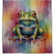 A colorful frog design set against a simple plain background. The frog features vibrant tones and intricate details, creating a striking and dynamic visual. The plain backdrop enhances the focus on the bee's vivid colors and artistic patterning.