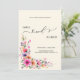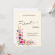 "Make your wedding invitation truly unforgettable with this exquisite design that marries vibrant artistry with essential modern convenience. The front of this invitation features a breathtaking cascade of fuchsia watercolor florals, gracefully blooming across a soft cream background. Each delicate stroke and subtle splatter brings an artistic, ethereal quality, setting a tone of romantic elegance for your special day. Your names, 'James and Allison,' are beautifully showcased in a sophisticated blend of bold and flowing script fonts, perfectly complemented by classic serif typography for all vital event details.