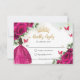 This pretty floral Quinceañera / Sweet 16 RSVP card features vibrant fuchsia / hot pink rose flowers, a girl dressed in a glittery fuchsia dress and hot pink and gold butterflies. Simply click the customise it further button to edit the texts, change fonts and fonts colours. Matching items available in store. (c) Somerset Fine Paperie