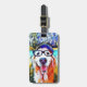 Deck out your luggage in style with this unique tag! Design features a vibrant art painting of a smiling golden retriever dog, who is wearing a hat and black nerd glasses.