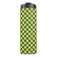 Vibrant Green and Grey Chequered Pattern Thermal Tumbler