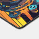 Supercharge your gaming setup or creative workstation with a desk mat that radiates pure adrenaline. This massive mousepad showcases a phenomenal, high-octane illustration of an abstract mechanical engine part. Rendered in a gritty, industrial pop-art style, the design explodes with vibrant cyan and orange hues against a deep black background. The diagonal motion lines and grunge splatters give the artwork an incredible sense of speed and raw kinetic energy.