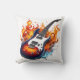 Vibrant guitar surrounded by flames at twilight cushion