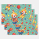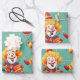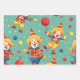 Vibrant Happy Birthday Clowns Pattern Wrapping Paper Sheet