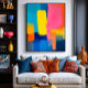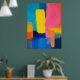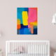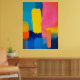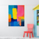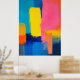 Bold layers of intense colour blocks create an abstract landscape pulsing with energy. Blue, pink, yellow, and orange interact in a vibrant and dynamic harmony.
