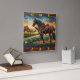 Vibrant Horse in Colourful Farm Scene Square Wall Clock