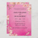 Make a bold and beautiful statement! This romantic invitation template features a vibrant hot pink watercolor background that bleeds into a soft, textured finish. The corners are elegantly decorated with delicate blush pink watercolor roses and green foliage, creating a beautiful contrast between modern color and classic romance.