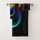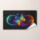 Vibrant infinity with rainbow butterfly on black bath towel set