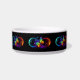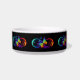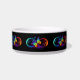 This is a heavy, durable bowl decorated with Tibbies of many colors, the perfect size for hungry/thirsty Tibs. The design is interesting and printing clear.