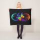 Vibrant infinity with rainbow butterfly on black fleece blanket