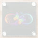 Vibrant infinity with rainbow butterfly on black glass coaster