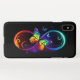 Vibrant infinity with rainbow butterfly on black iPhone case