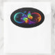 Vibrant infinity with rainbow butterfly on black oval sticker