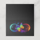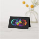 Vibrant infinity with rainbow butterfly on black place card