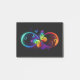Vibrant infinity with rainbow butterfly on black post-it notes