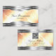 Vibrant Ivory Peach with Silver Borders QR Code Business Card