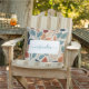 The picture doesn’t show the design but this pillow is adorable. The colors are bright and fresh, the fabric is great for indoor/outdoor use. Beautiful colors and picture of flip flops. Font is great.