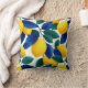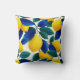 Vibrant Lemon & Blue Leaves Watercolor Pattern Cushion
