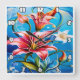 Vibrant Lily Blooms Against Blue Backdrop Square Wall Clock