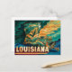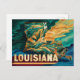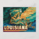 Celebrate the vibrant spirit of Louisiana with this captivating map illustration. Blending abstract and realistic elements, this artwork showcases the state's diverse landscape in a rich palette of deep greens, golden yellows, and rich blues.