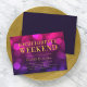 Classy bachelorette party invitation featuring the words "Bachelorette Weekend" in faux gold foil against a vibrant magenta bokeh lights pattern background. Invitation has a dark purple background back side. You can also add the itinerary on the back side, if you wish, by clicking "customise" and adding text.