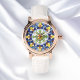 Vibrant Medallion Symmetric Leafs Floral Majolica Watch