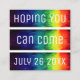 The back features a repetition of the original abstract rainbow artwork and a casual reference to confirm their attendance on the date of your event.