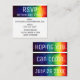 This small brilliantly rainbow coloured RSVP card is the perfect compliment to the Vibrant Modern Abstract Rainbow Invitation and should help keep your event top of mind so they reply promptly. It contains all of the important details they need to confirm their attendance in a modern way.