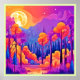 A vibrant and colourful painting of a forest at night with a full moon. The trees are a variety of colours, including purple, orange, and blue. The sky is filled with stars (This Design Made With AI). Place Order Today and Embrace the Joy of Shopping!