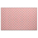 Vibrant modern fabric design featuring a seamless pattern made of geometric shapes in red and white on a grey background.