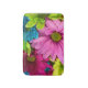 Vibrant, colourful, daisy flowers in colours of magenta, pink, blue, and lime green.