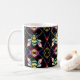 Vibrant Neon Honeybee with Abstract Hexagonal Coffee Mug