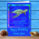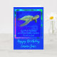 Vibrant Ocean Blue Sea Turtle Happy Birthday Card