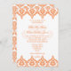 Beautifully decadent Wedding invitation in vibrant orange and white. Detailed damask border is printed at the top and bottom of this wedding invite with full vibrant orange and white pattern on the back. This is perfect if you are having an elegant bridal shower, wedding or event. Feel free to change the wording, font type etc in the 'Customise it' menu. If you need any assistance please contact me through the link above :-)