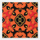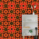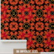 This wallpaper features a bold and vibrant pattern with floral motifs. The primary colour scheme is orange and black, creating a striking contrast. The flowers are outlined in black against an orange background, and each petal exhibits intricate layering. Smaller accent details in white and grey add depth to the design.