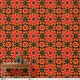 Vibrant Orange Kilim Geometric Floral Pattern Wallpaper