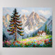 Vibrant Painting Mountain Wildflower Cabin Art Poster