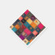 This classic patchowrk pattern showcases an array of colorful fabric squares. Each unique patch features diverse textures, patterns, and intricate embroidered floral or abstract designs, celebrating traditional textile art and bohemian esthetics with its rich, eclectic, and handcrafted appeal.